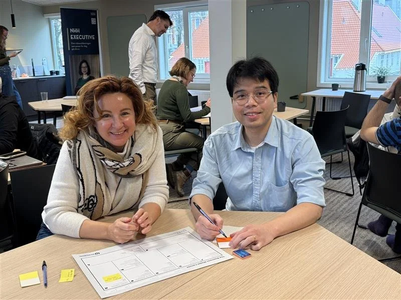 Valeriya Lyssenko and Tung X. Trinh working on the DiaZERO project during a TILT workshop, exploring how earlier detection could help prevent severe diabetes complications.