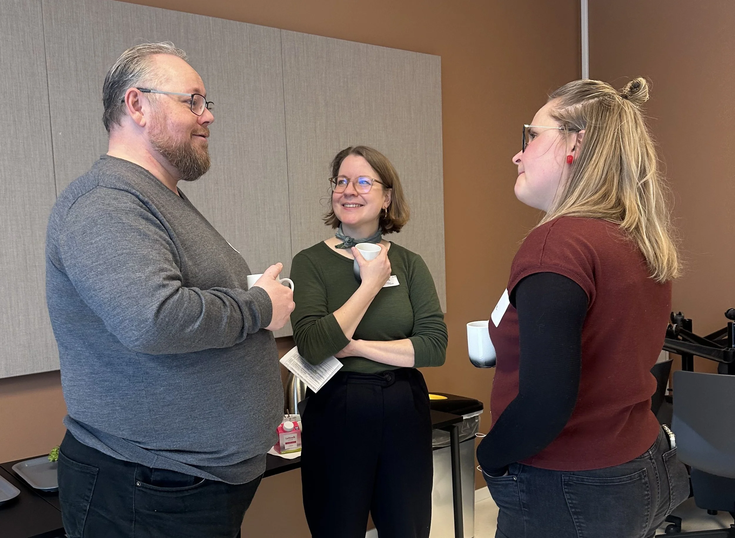 Morten Storevik, Petra Hribovšek, and Maarja Vislapuu in discussion during a TREco stakeholder workshop. Photo: Lydia Boyle.